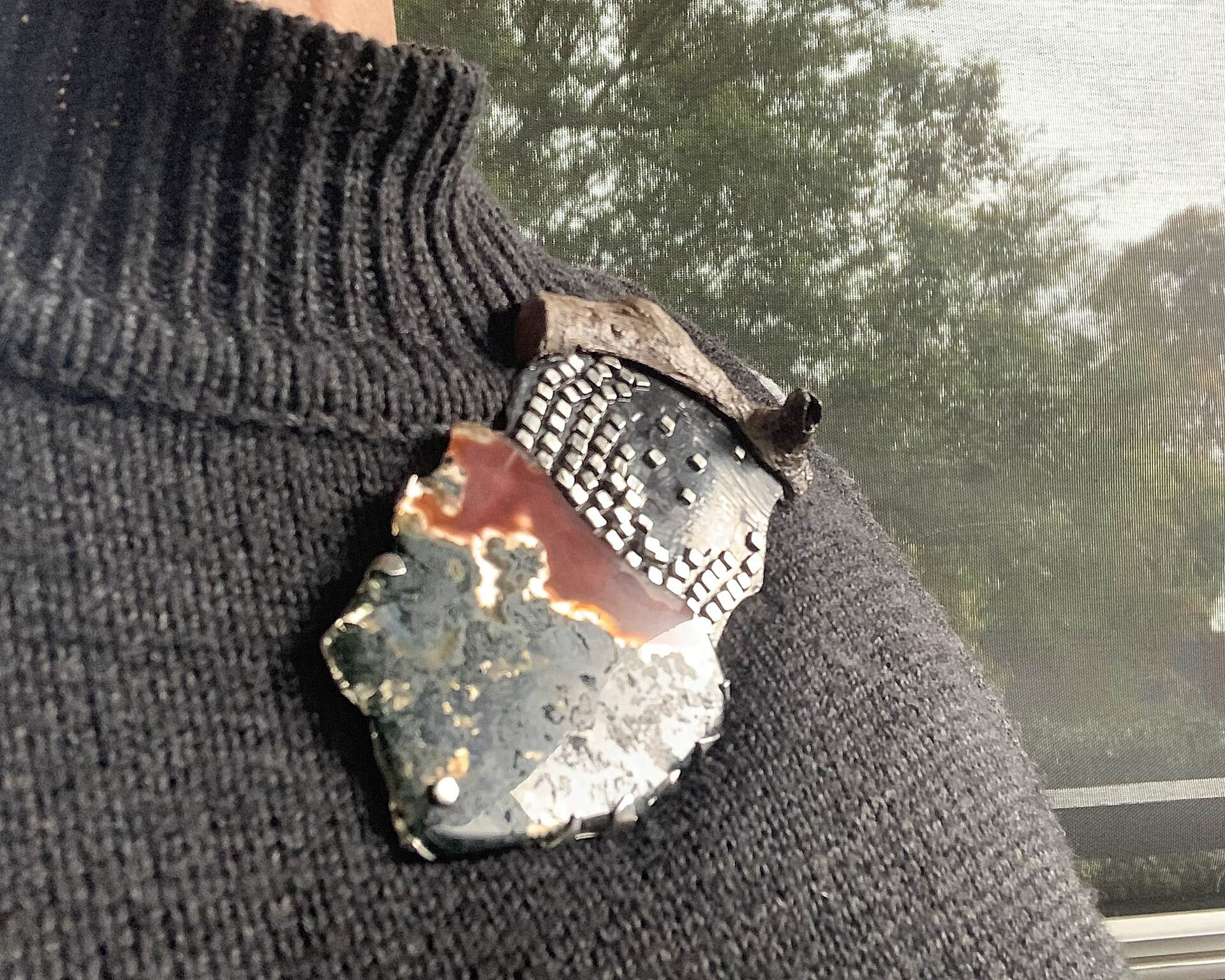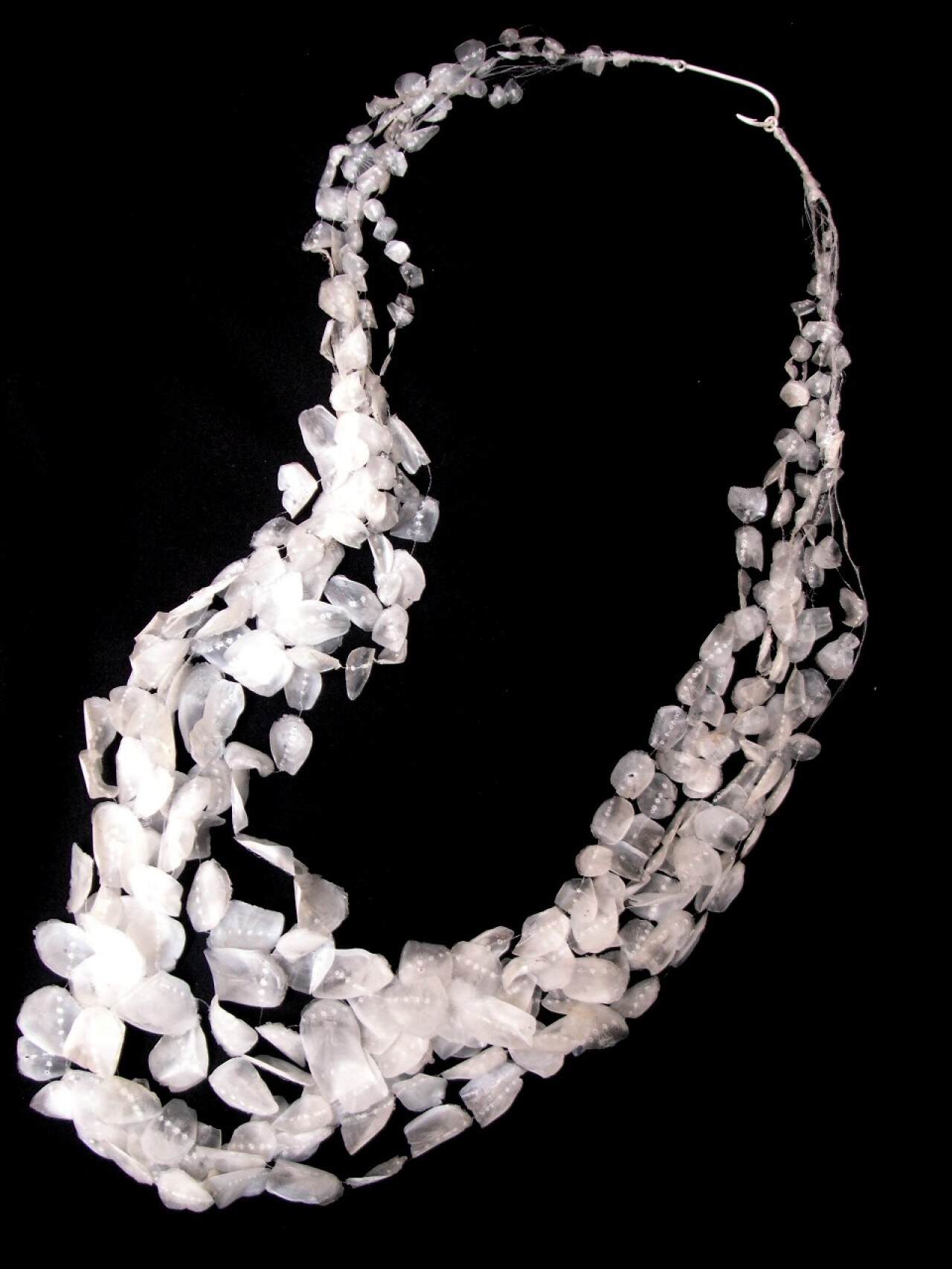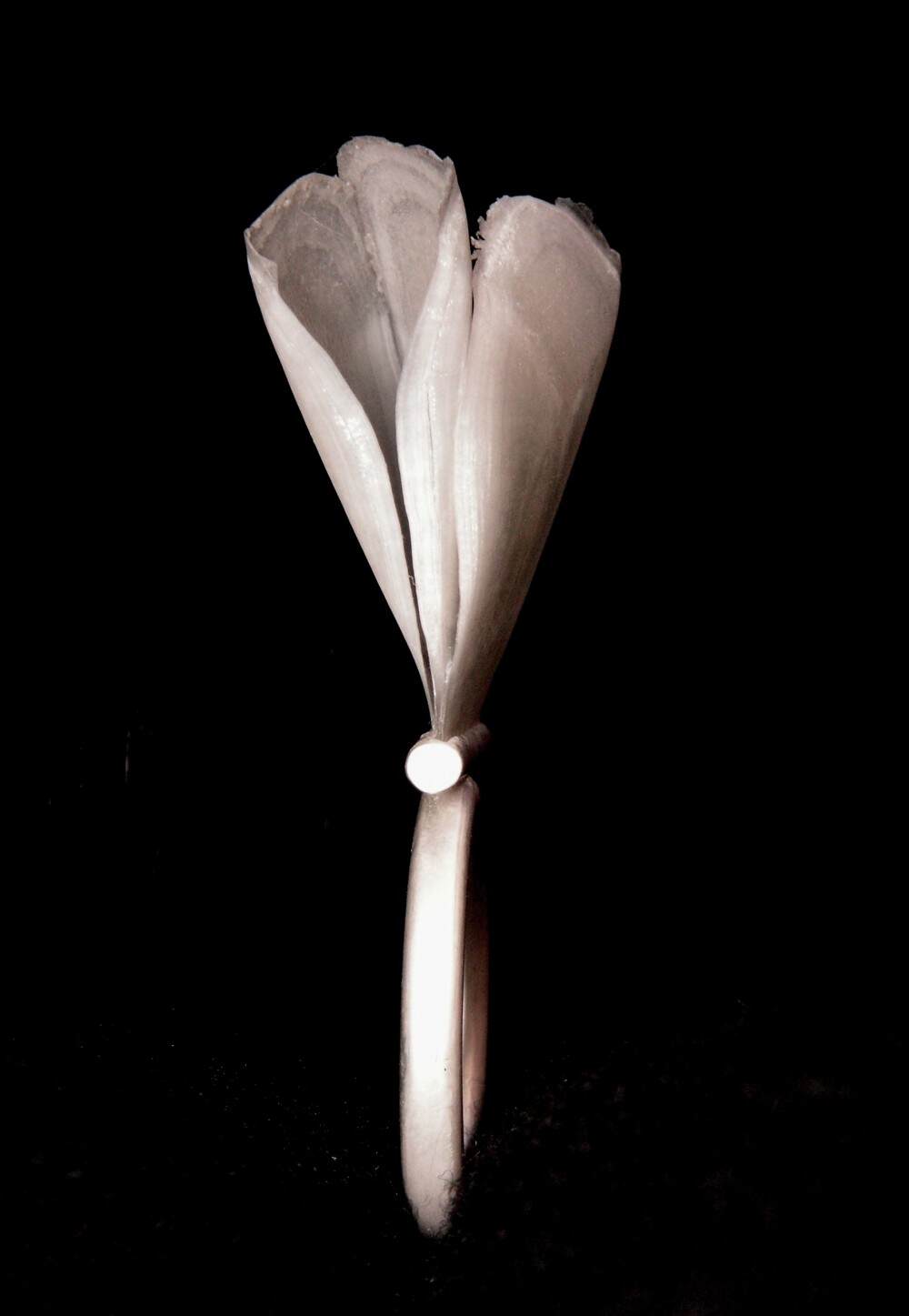 With an emphasis on investigating materials and techniques as starting points in the design process, she often finds ways to incorporate found and natural materials into her work thereby making the startlingly non-precious, precious. Materials are intrinsic to her designs because they have a language of their own which speaks to the viewer and contributes to the meaning of the work. Through this investigation, she explores and expands upon opportunities to re-contextualise contemporary jewellery.