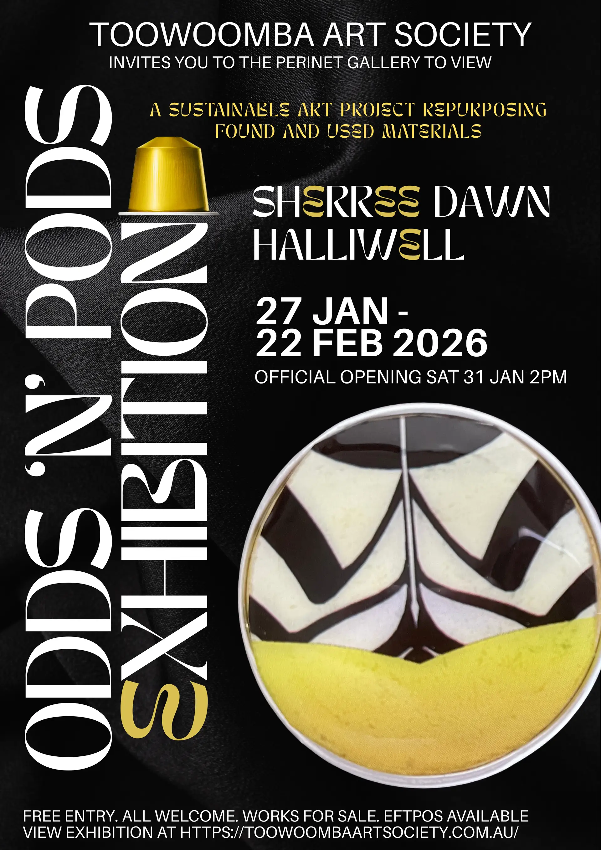 Sherree held her first solo exhibition at Culliford House from Jan 27th - Feb 22nd, presenting 62 works celebrating second chances, where discarded materials found new life through innovation, storytelling and texture. In this sustainable art project, Sherree repurposed aluminium coffee pods, gift wrapping paper, magazine images, polyfoam packaging wrap, and sustainably sourced feathers, giving each renewed purpose. Each piece was a conversation between waste and wonder, reimagining form and function to inspire creation from consumption.